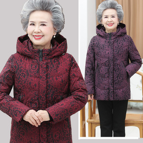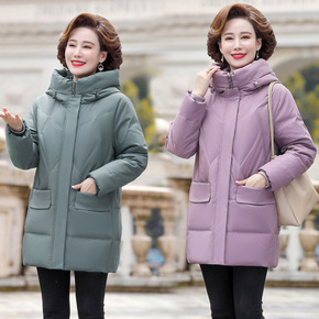 2021妈妈冬新款连帽白鸭绒羽绒服大码中长款老年女...