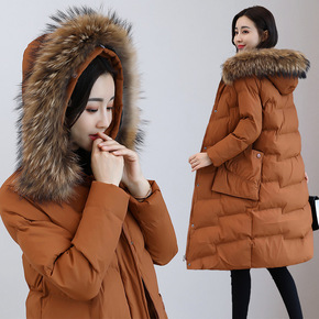 中长款棉服女2021冬季新款大毛领棉衣韩版冬装加厚...