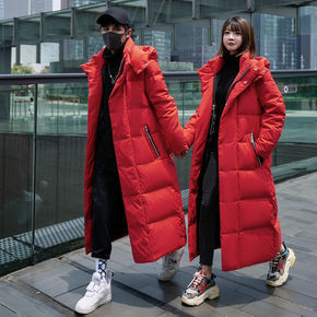 红色亮面羽绒棉服女中长款2021年新款冬装时尚修身...