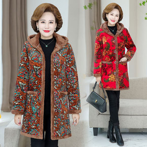 2022冬季新款时尚洋气印花棉服女中长款休闲宽松棉...