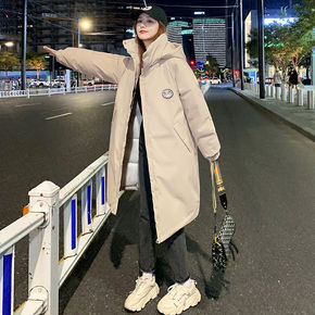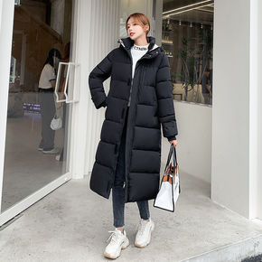 棉服女中长款2021年冬季新款韩版宽松收腰过膝加厚...