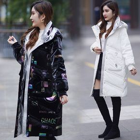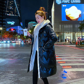 免洗亮面炫彩2021新款冬季羽绒棉服女中长款202...