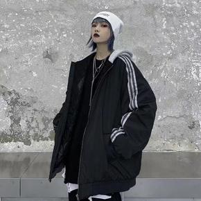 冬季2021新款韩版ins复古拼接棉服宽松加厚连帽...