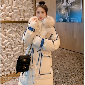 2022新款派克服女中长款棉衣女韩版过膝大毛领棉服...