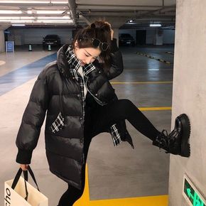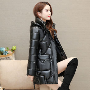 亮面羽绒棉服女2021年冬季新款韩版修身中长款加厚...