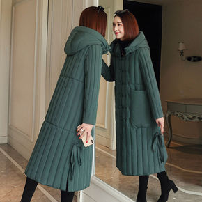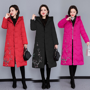妈妈装民族风过膝棉衣女中长款冬装新款斤穿大码棉服外...