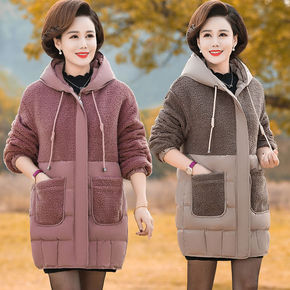 妈妈冬装外套棉衣中年女装加绒加厚摇粒绒羊羔毛大衣中...