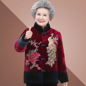奶奶装冬装棉衣加绒加厚-岁妈妈外套老年人棉袄女老太...