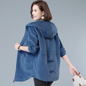 灯芯绒风衣女中长款2021新款春装中年妈妈加肥加大...