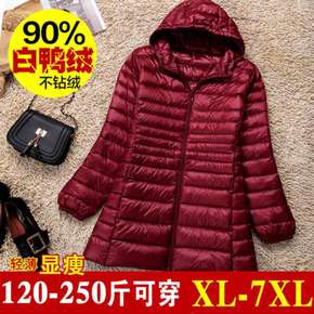 反季清仓特价胖妹妹加肥加大码轻薄羽绒服女中长款20...