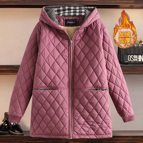 加肥加大码女装冬装中长款加绒加厚连帽棉服中老年妈妈...