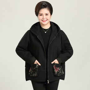 奶奶冬季牛仔加绒外套老年人秋装女风衣50-60岁老...