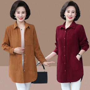 中老年春秋外套女薄款加肥加大码妈妈装180斤衬衫中...