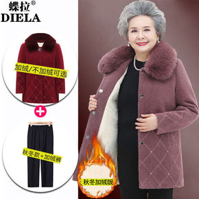 中老年妈妈装秋装外套女冬季加绒加厚拉链衫老年女装大...
