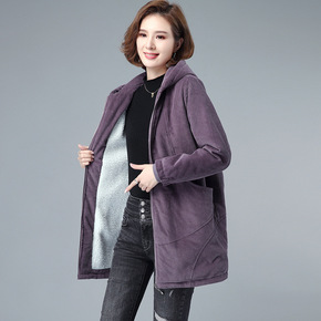 加绒加厚连帽灯芯绒风衣外套棉衣加肥加大码中老年妈妈...