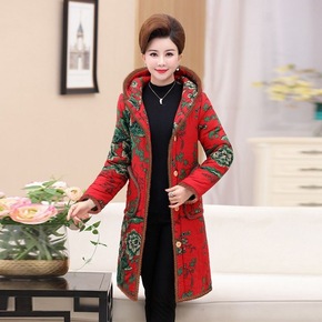 中老年妈妈装棉衣女冬季新款中长款大码妈妈装加绒加厚...