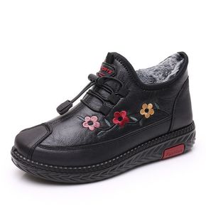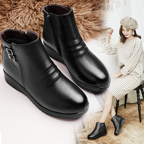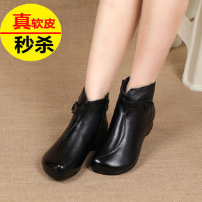 妈妈小短靴女秋冬款头层牛皮单靴棉靴软底厚底平底真皮...