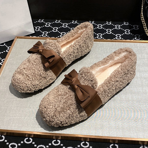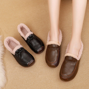 女鞋加绒保暖豆豆鞋软底防滑妈妈鞋孕妇鞋冬季平底工作...