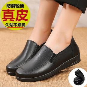 真皮妈妈单鞋女加绒女鞋软底软面不累脚防滑轻便中老年...