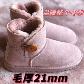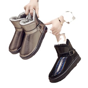 韩版搭扣2021低筒雪地靴女短靴子冬加绒厚底加绒棉...