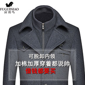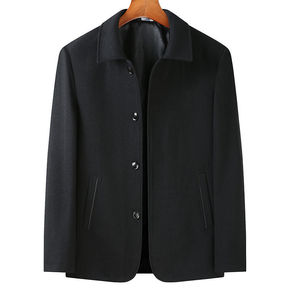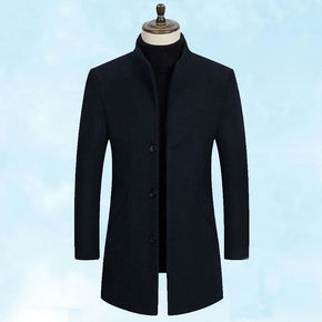 毛呢大衣男秋冬外套男爸爸装中年立领商务休闲羊毛呢中...