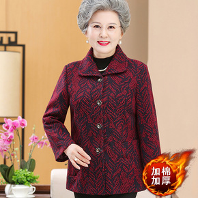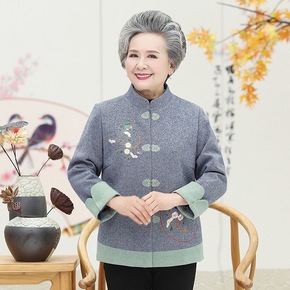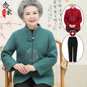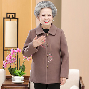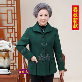 老年人春秋女妈妈毛呢外套唐装60岁70老太太奶奶装...