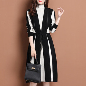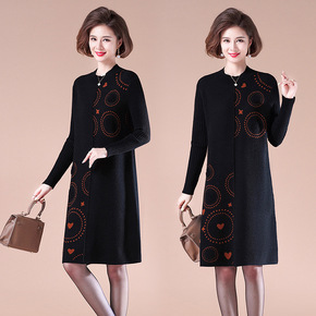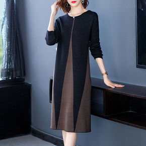 时尚拼色毛衣裙2021秋冬新款中年妈妈宽松显瘦女装...