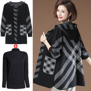 胖妈妈装秋冬新款中长款外套上衣中老年女装中长款毛衣...
