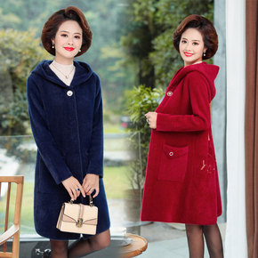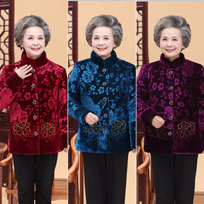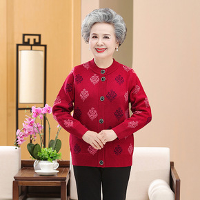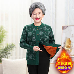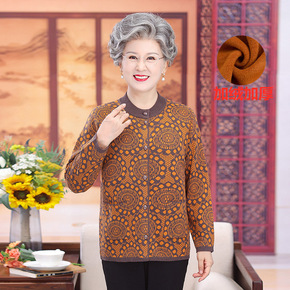 中老年妈妈装秋冬外套60岁奶奶加绒开衫老人毛衣女老...