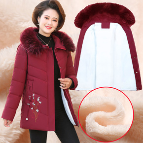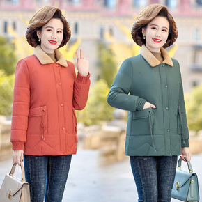 中年妈妈棉衣冬装加绒加厚外套时尚40岁50中老年女...