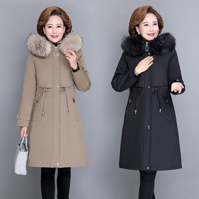 妈妈羽绒服中长款中老年秋冬棉袄2021新款中年女装...
