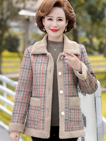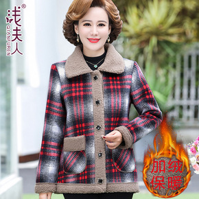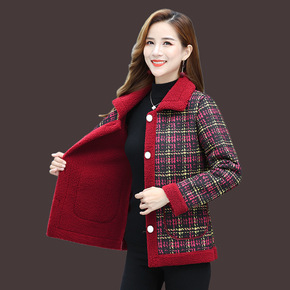 妈妈冬装加绒格子外套短款加绒棉衣中老年女秋冬宽松洋...