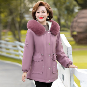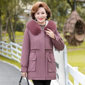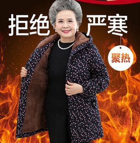 加肥加大码女中老年妈妈棉服宽松连帽时尚加厚保暖灯芯...