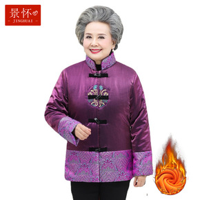中老年新款2021加绒加厚棉衣外套仿唐装复古上衣妈...