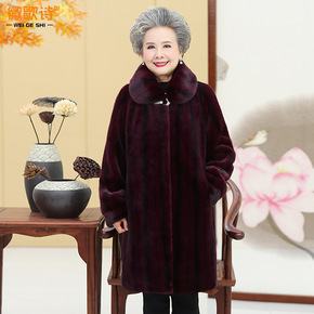 中老年人女装秋冬装仿皮草大衣妈妈款水貂绒外套老太太...