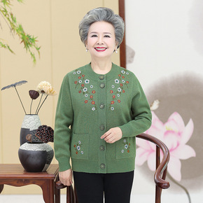 老太太毛衣开衫圆领中老年人秋冬装长袖奶奶装针织上衣...