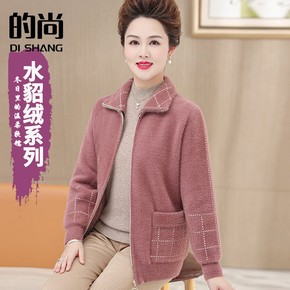 2021年中老年女装水貂绒加厚外套洋气针织开衫妈妈...