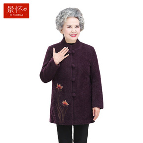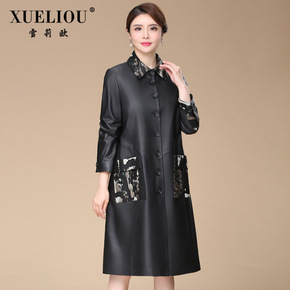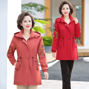 妈妈春秋大码风衣外套洋气收腰中长款中老年女装秋装绣...