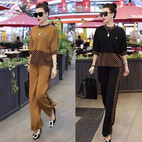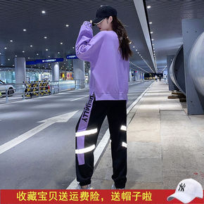 休闲运动套装女春秋季新款时尚宽松大码跑步服洋气卫衣...