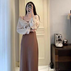 秋新款气质套装女法式纤巧露肩连衣裙+甜辣设计感卫衣...