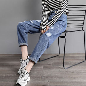 2022年新款破洞牛仔裤女夏春秋装直筒宽松高腰显瘦...