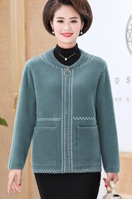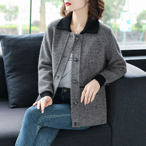 妈妈外套短款40岁50水貂绒针织开衫上衣圆领中老年...