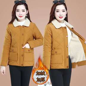 妈妈秋冬装棉袄女短款加绒加厚棉衣外套2022新款中...