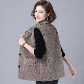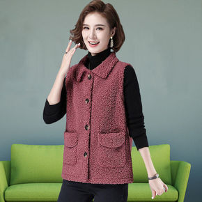 马夹中年妈妈女仿羊羔毛马甲大码背心2022秋冬装新...