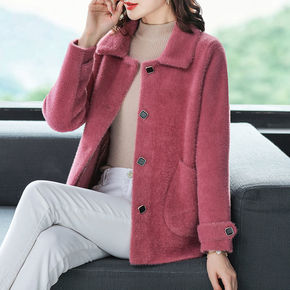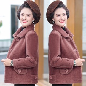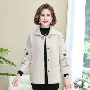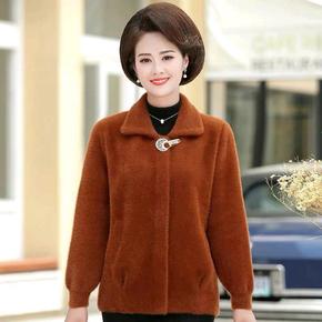 喜庆妈妈秋冬装水貂绒外套短款中老年女时尚开衫洋气上...