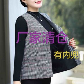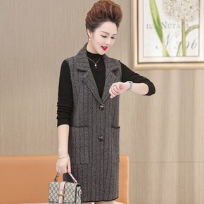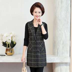 中长款西装领呢子马甲外套女2021秋冬装中年妈妈休...