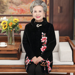 中老年女装妈妈装秋装仿水貂绒外套女春秋新短款宽松洋...