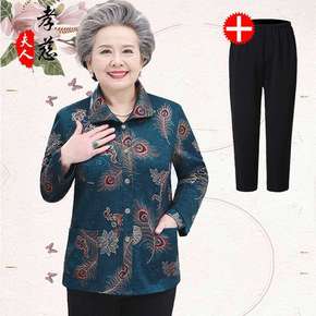 老年人女装秋装薄款外套上衣妈妈长袖衬衫60岁70老...
