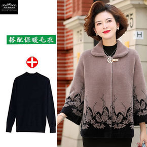 中老年妈妈装秋冬加厚短款仿貂绒毛衣开衫水貂毛皮草大...