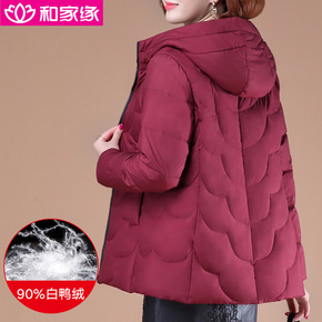 中老年羽绒服妈妈装修身短款外套冬季轻薄白鸭绒羽绒内...